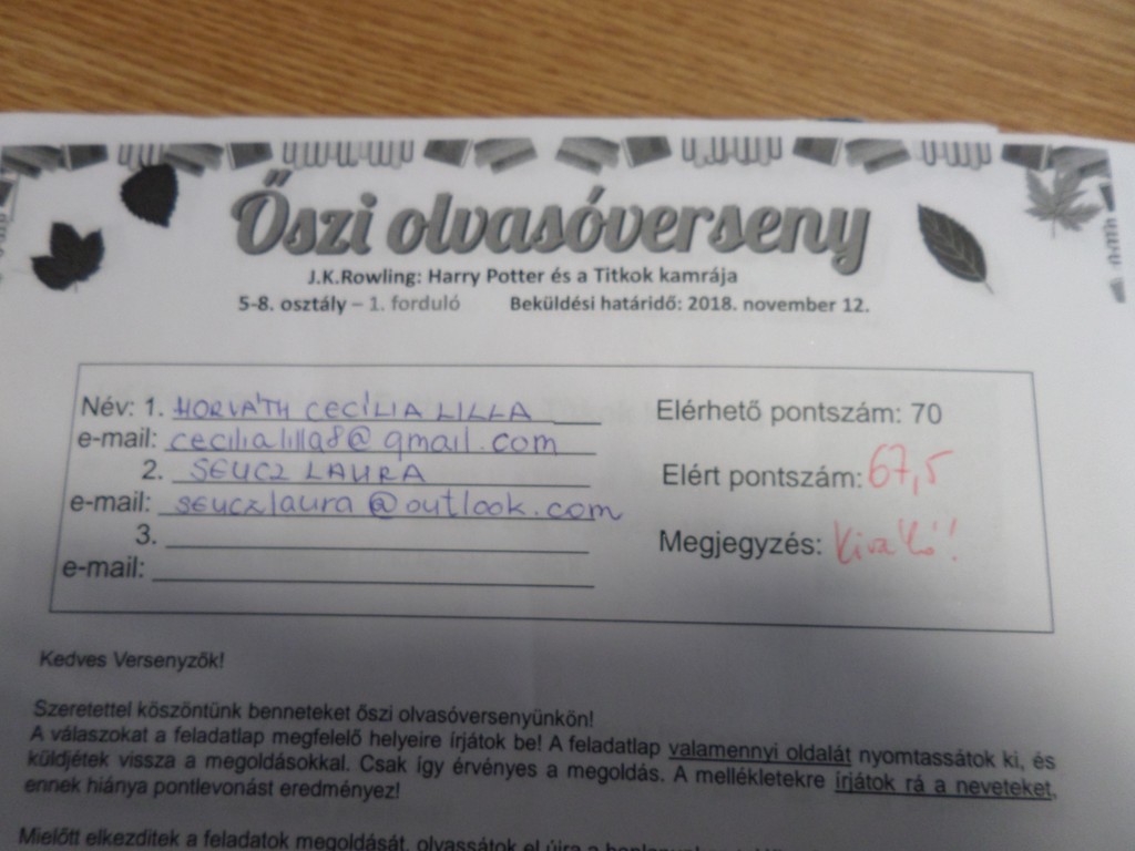 ORSZÁGOS OLVASÓVERSENY - 2019
